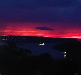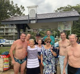 This dawn photo shows that the great Kenneth Kingsley Palmer was looking over us all as we took a memorial swim out to the Cat and around the Pin in his memory . The first winter swim (sans Westuits) for Bevan, Chris, Dave U Dave Sanney & SBJ …all having a ‘dippy dunker’ in his memory … Linda,Tony, Chrissy, Ruth & others all there of course . Sutho taking a swim a little later. Ken’s service to be held this morning at the Scots Kirk Church, Mosman. VALE KEN ! Sincerest condolences and big hugs to wife Robyn.