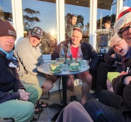 Bravo to all the brave souls…Dave U, Dave S. and Ed (our best wishes to your Mum/grand-ma guys), Bevan,Chris & of course Sutho chasing up the rear…who then took off for another kilometre swim without us…