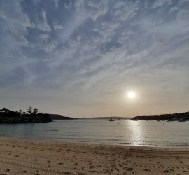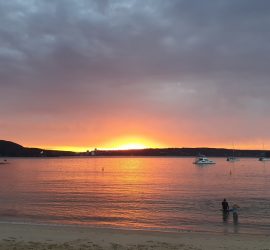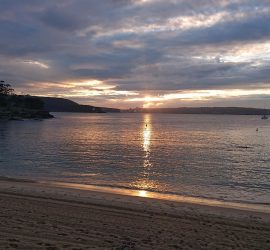 This dawn photo shows that the great Kenneth Kingsley Palmer was looking over us all as we took a memorial swim out to the Cat and around the Pin in his memory . The first winter swim (sans Westuits) for Bevan, Chris, Dave U Dave Sanney & SBJ …all having a ‘dippy dunker’ in his memory … Linda,Tony, Chrissy, Ruth & others all there of course . Sutho taking a swim a little later. Ken’s service to be held this morning at the Scots Kirk Church, Mosman. VALE KEN ! Sincerest condolences and big hugs to wife Robyn.