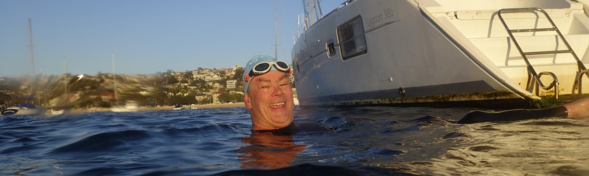 Dave S. cuddling & getting stung by the only big jelly fish to be found in Sydney harbour…only Dave.